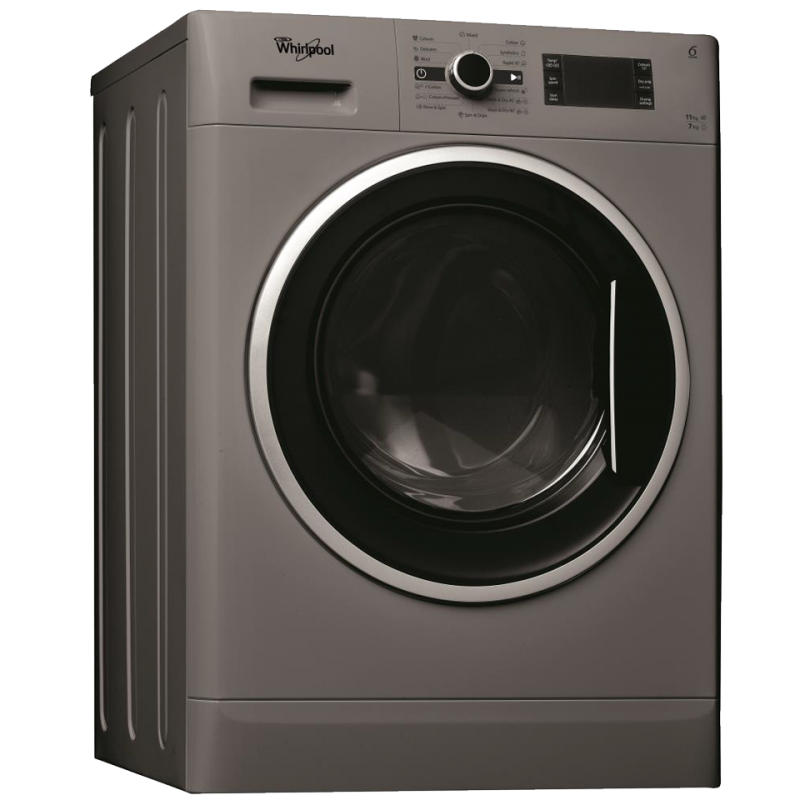 This Whirlpool freestanding Washer Dryer features: silver color. Spacious 7kg drying capacity. Outstanding 11kg washing capacity. Exclusive 6th SENSE technology that constantly monitors the moisture inside the drum, protecting your clothes and providing ideal washing and drying results. A fast, resource-efficient 1551 revolutions per minute spin speed.
